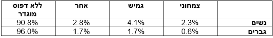 להלן שיעור המשתתפים לפי דפוס התזונה: